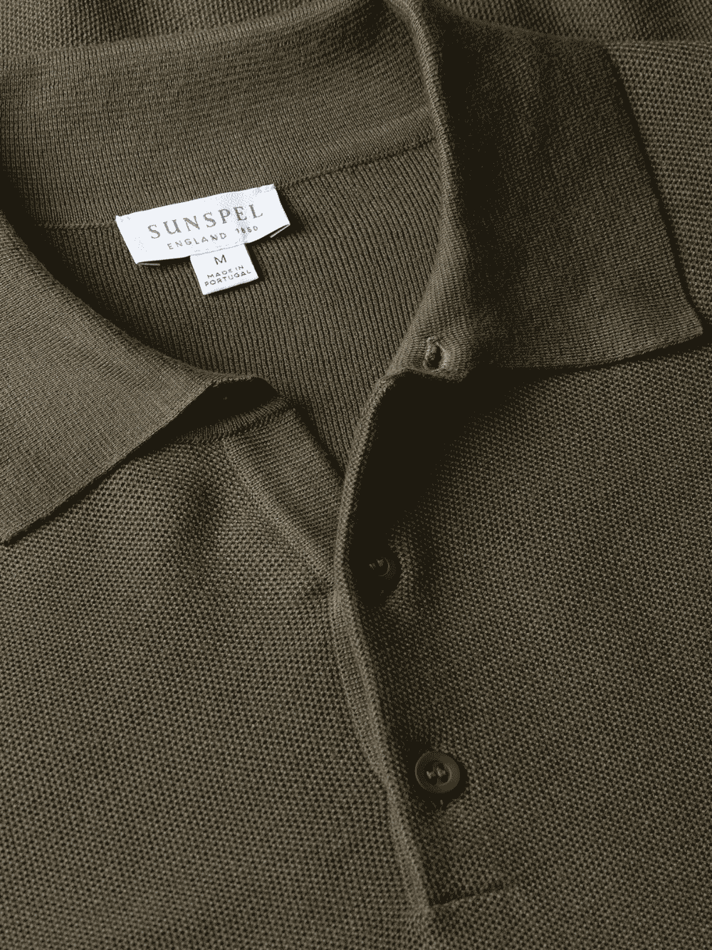Das Strick‑Polohemd in Khaki von Sunspel mit folgenden Merkmalen: