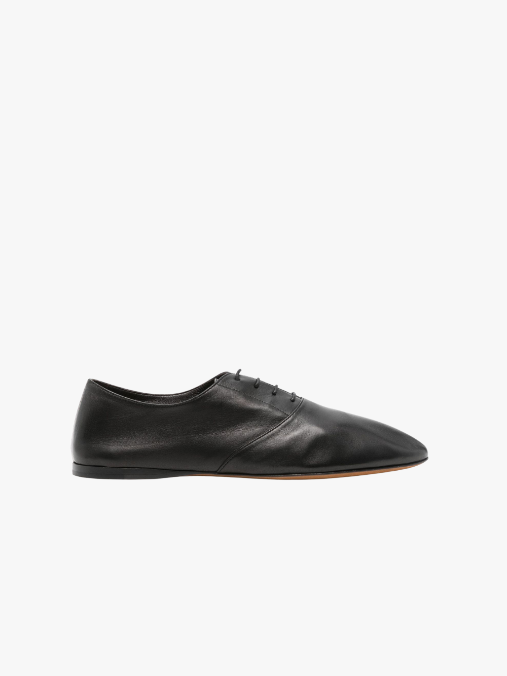 Klassische Schuhe Awar von The Row mit folgenden Eigenschaften: Glatte Narbung, Schnürverschluss vorne, gewachste Schnürsenkel, mandelförmige Spitze, Innensohle aus Leder mit Markenzeichen, flache Ledersohle, Laufsohle aus Gummi.