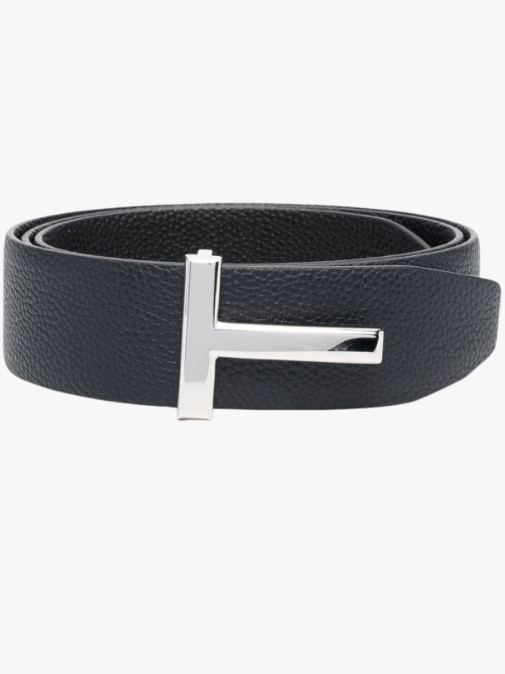 Der Grain Leather T Icon Gürtel in Dunkelblau/Schwarz von Tom Ford mit folgenden Merkmalen: