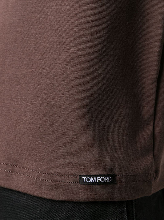 Ein schlichtes T-Shirt von TOM FORD mit kurzen Ärmeln in Dunkelbraun.