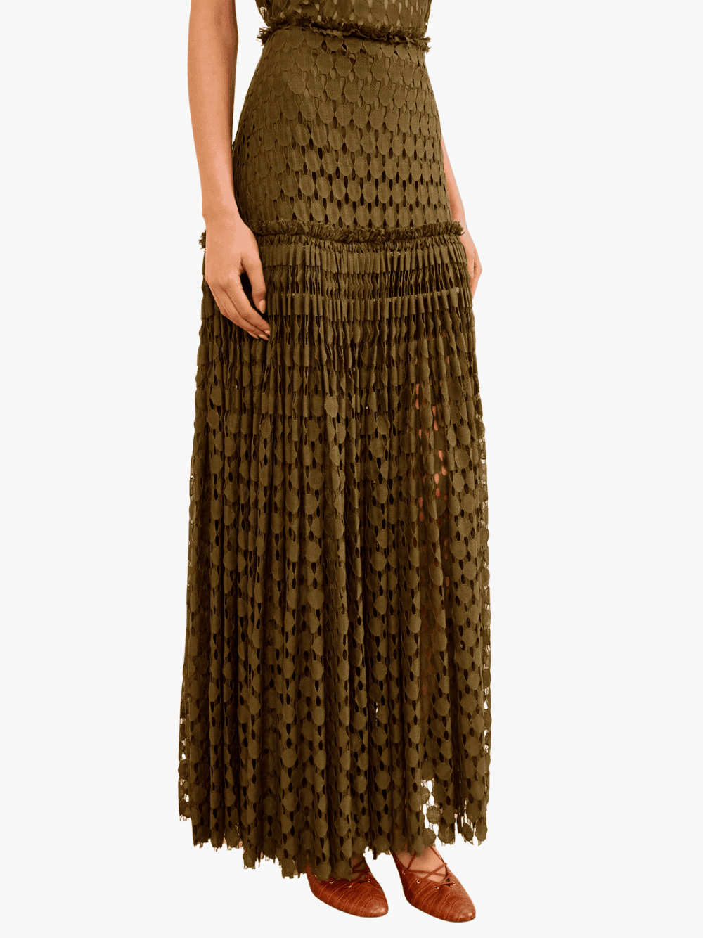Die Aris Lace Maxi Skirt in Pine von Ulla Johnson mit folgenden Merkmalen: