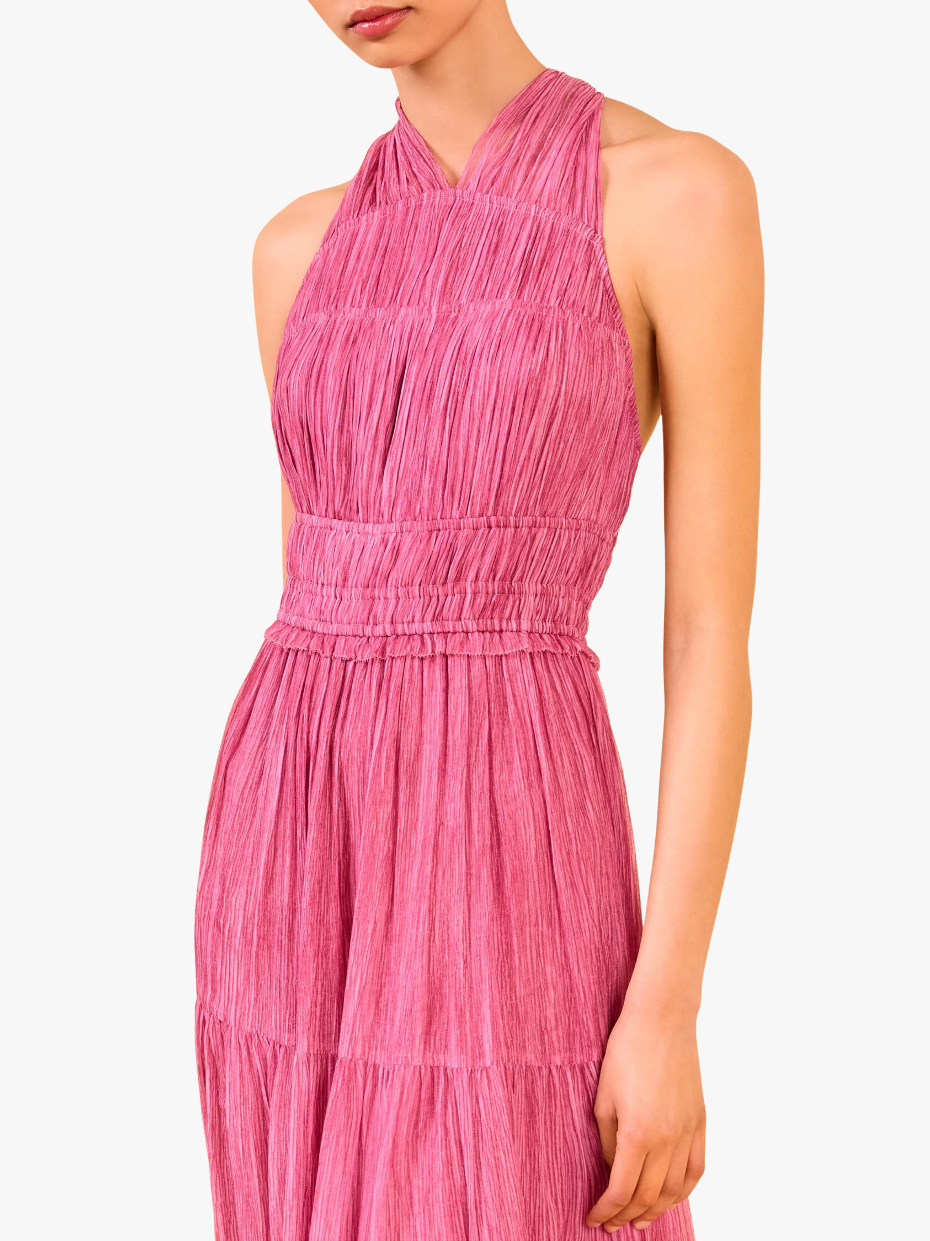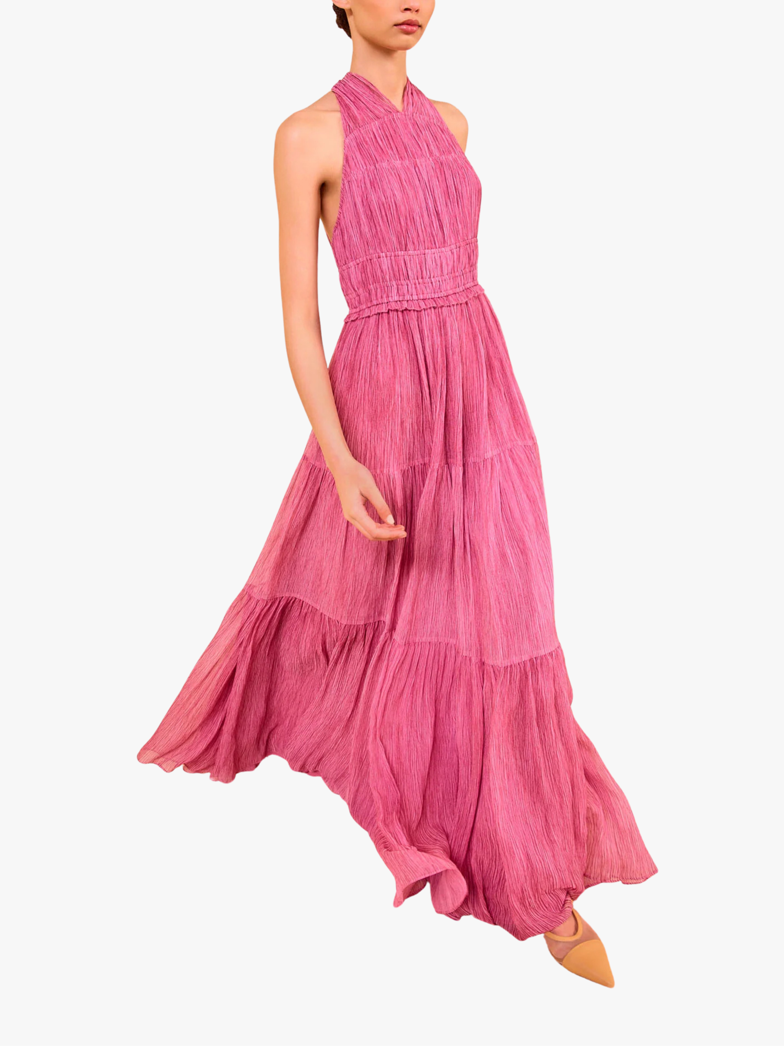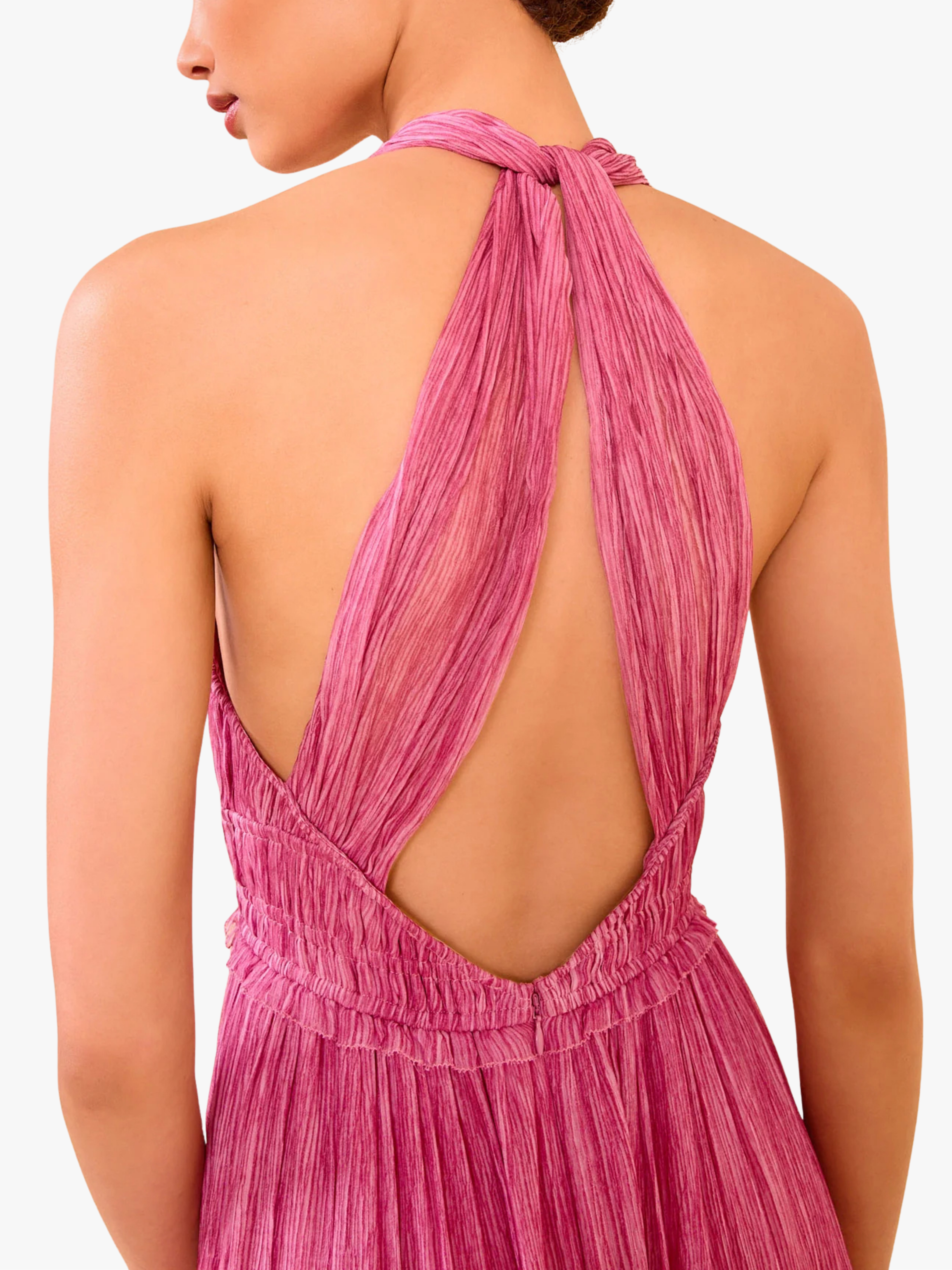 • Gefertigt aus luxuriösem crinkle Chiffon‑Seidenstoff, der dem Kleid eine fließende, sanft bewegte Silhouette verleiht.