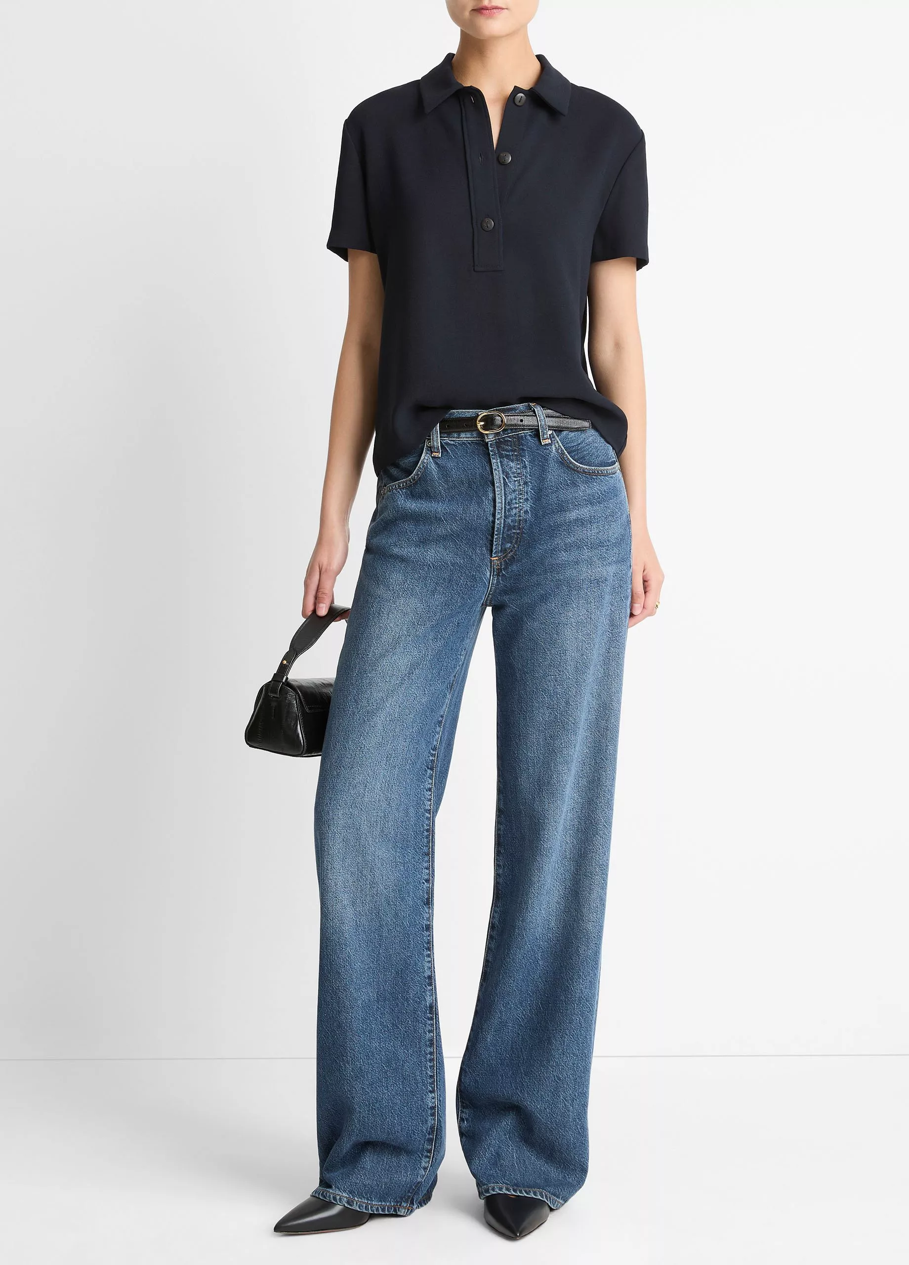 Die Crepe Polo Shirt in Coastal Blue von Vince mit folgenden Merkmalen: