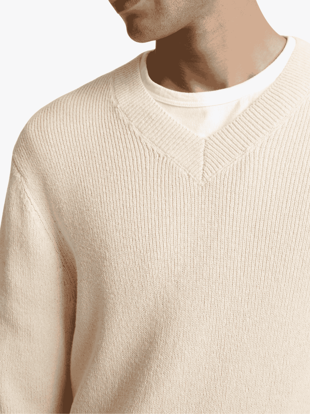 Der Ribbed Italian Cotton-Blend V-Neck Sweater in Classic Cream von Vince mit folgenden Merkmalen: