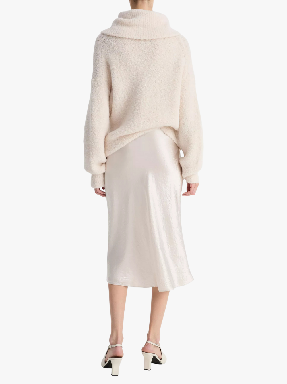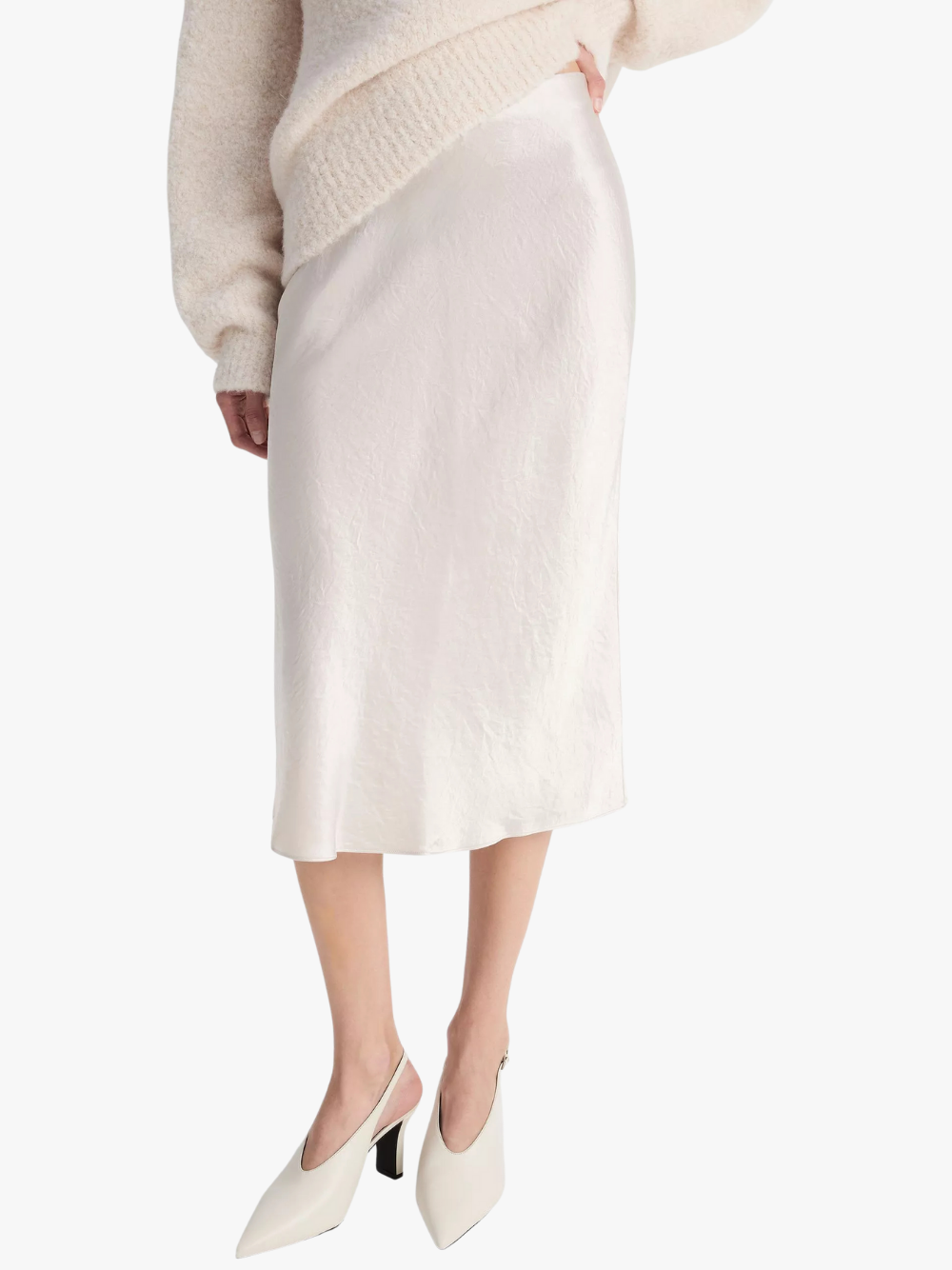 • Eleganter Midi‑Rock im Slip‑Silhouette‑Cut aus fließendem Satin mit leichtem Schimmer für subtilen Luxus und Alltags‑Eleganz.