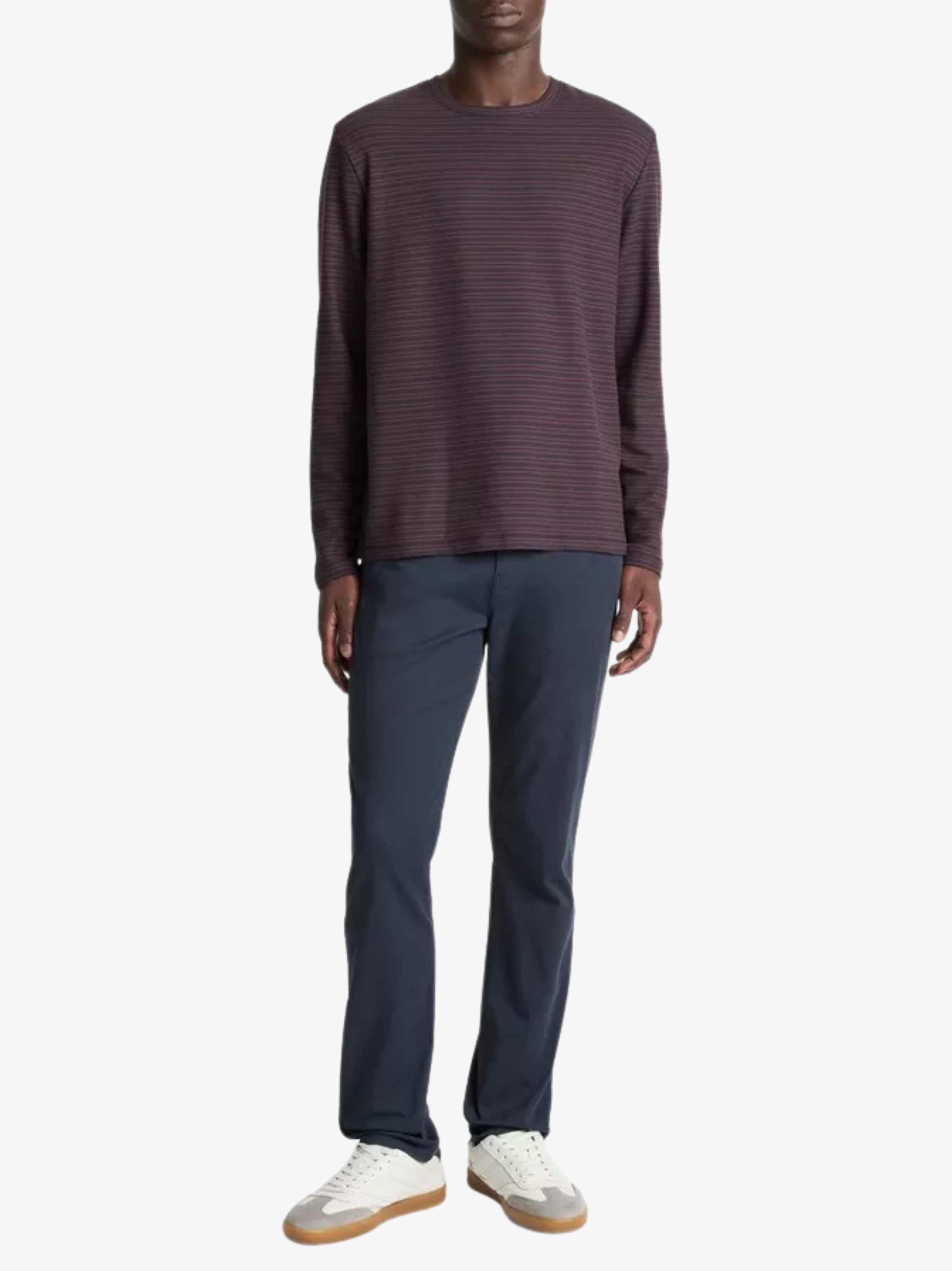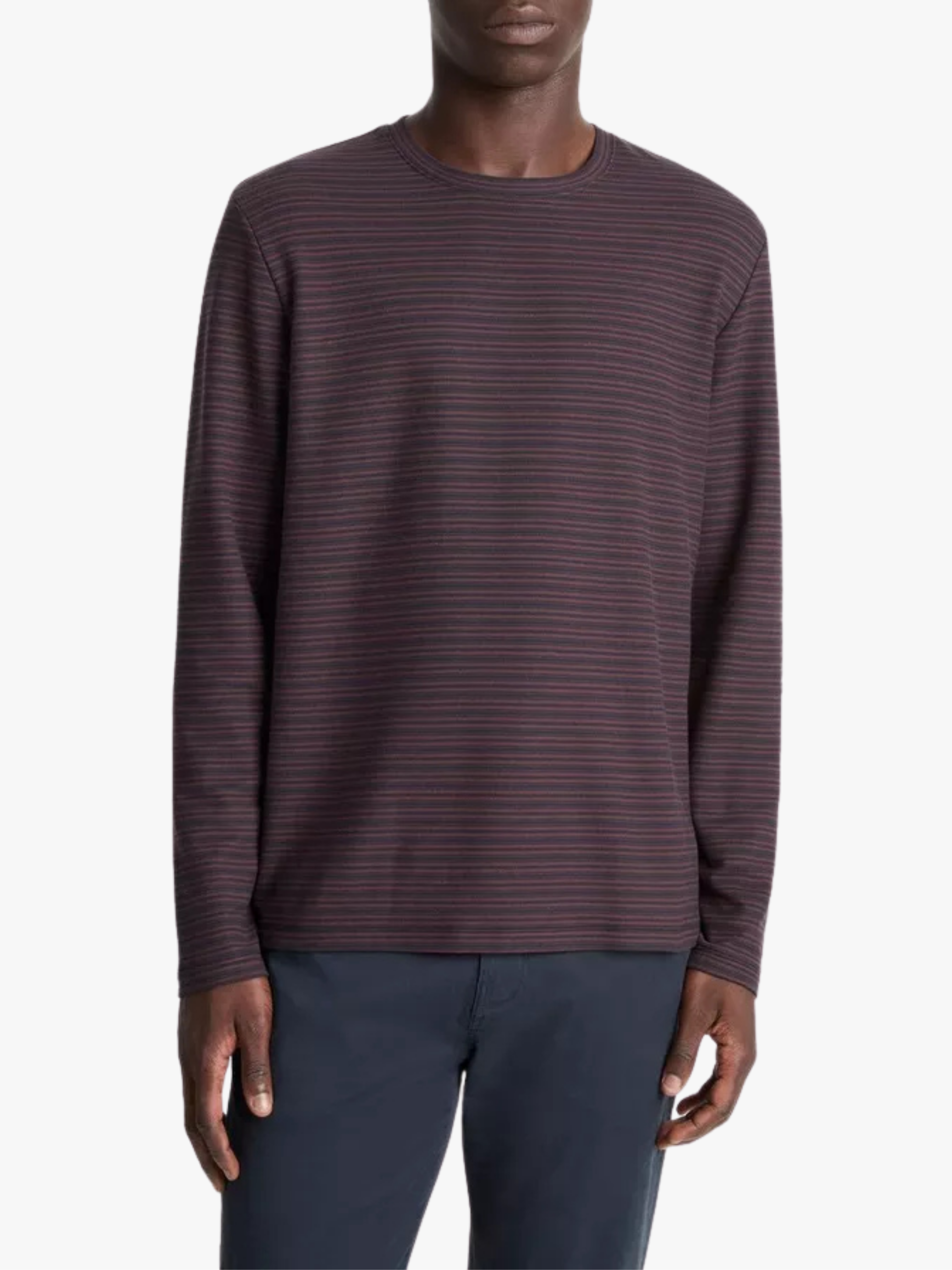 Das gestreifte Long-Sleeve-T-Shirt in Bordeaux von Vince mit folgenden Merkmalen:
