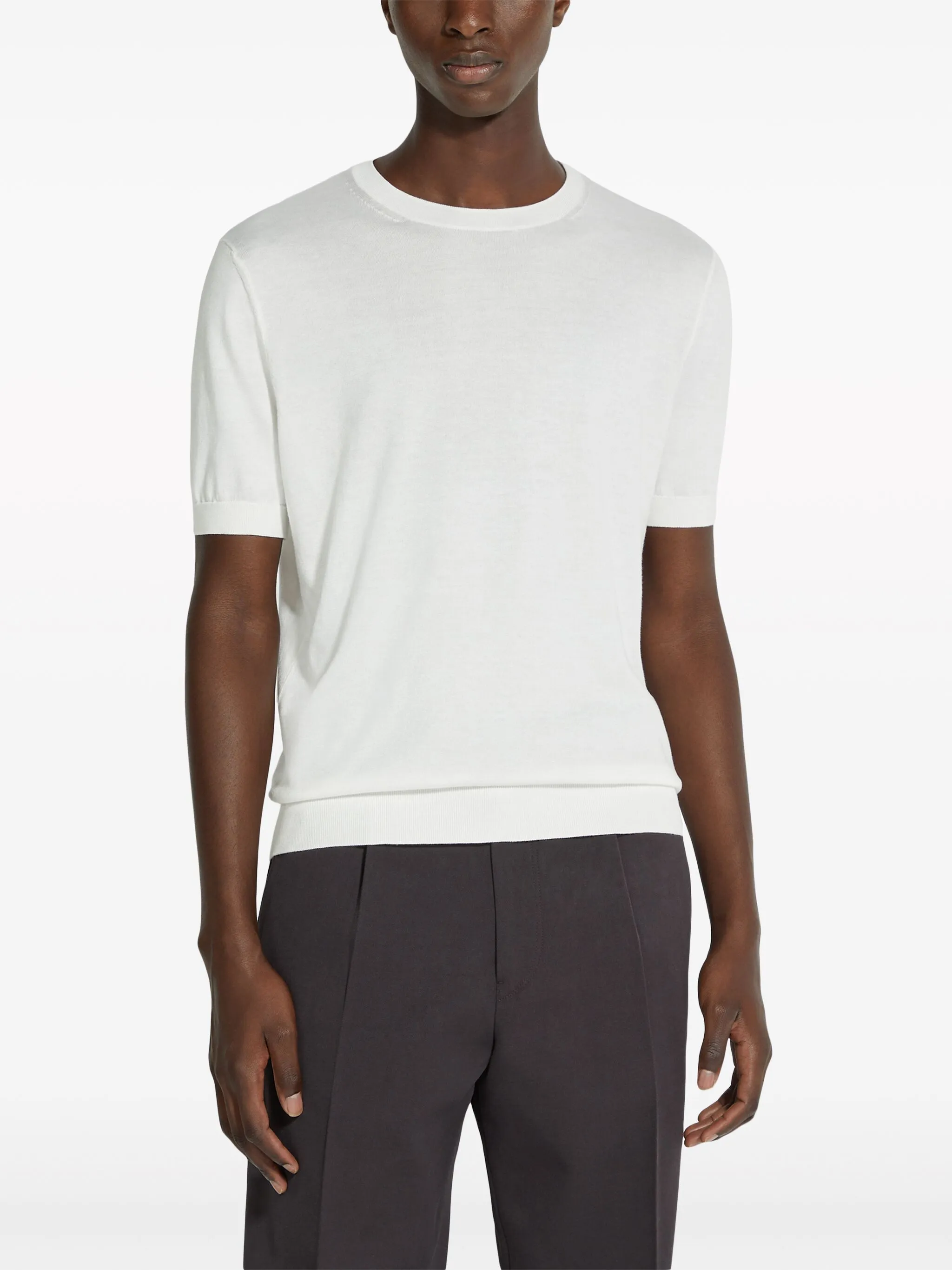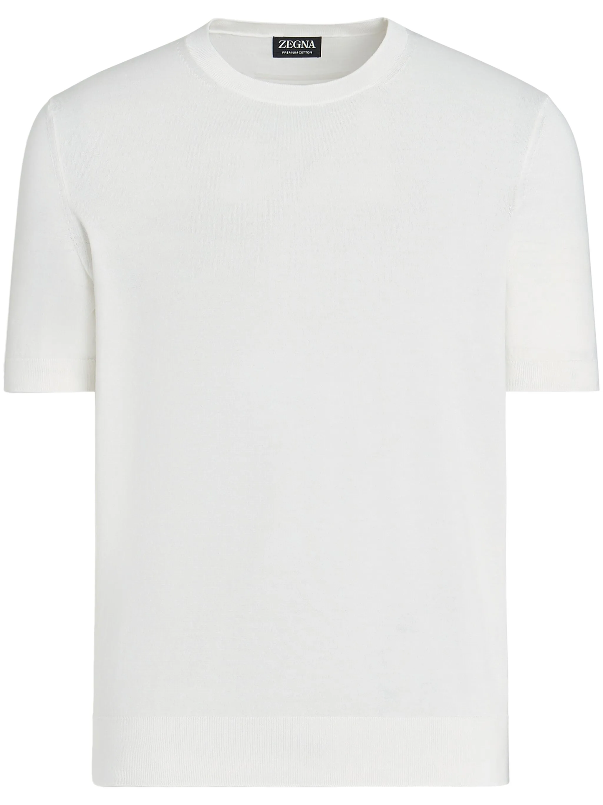 T-Shirt von Zegan mit folgenden Eigenschaften: gerippte Abschlüsse, Rundhalsausschnitt, kurze Ärmel, gerader Saum.