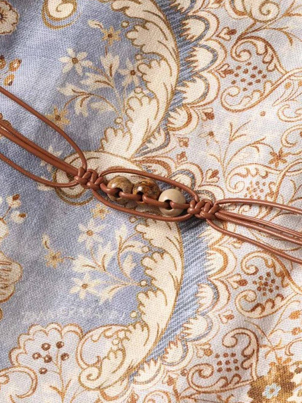 - Abnehmbarer Makramee-Gürtel mit Perlen zur Betonung der Taille.