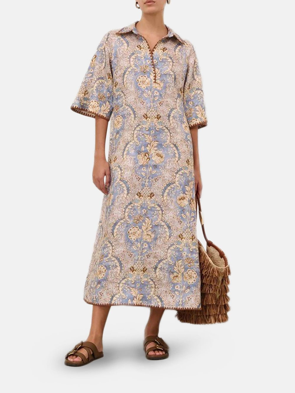 Das Daylight Tunic Midi in Damask Denim von Zimmermann mit folgenden Merkmalen:
