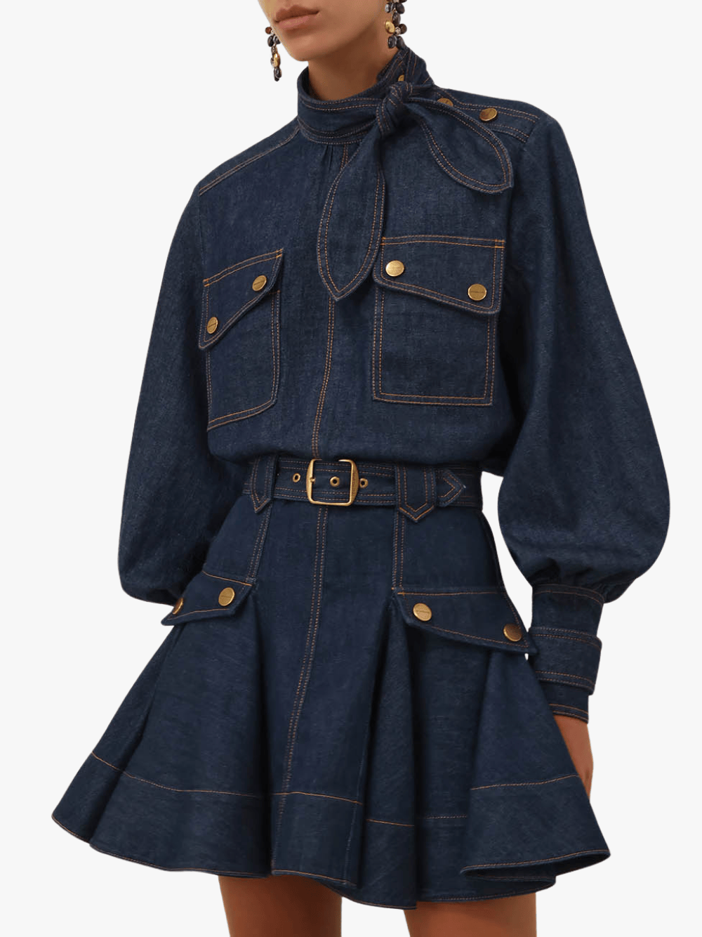 Die Denim Cargo Blouse in Harbour Blue von Zimmermann mit folgenden Merkmalen: